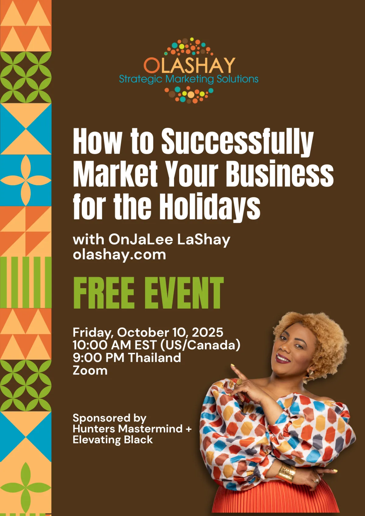 Led by OnJaLee LaShay, President of Olashay Strategic Marketing Solutions, this powerful session provides the tools you need to finish the year strong.
